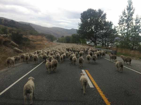 Sur la route, une surprise nous attends. Des centaines de moutons qui ns bloquent la route. La on est en NZ ! On se marre tellement !